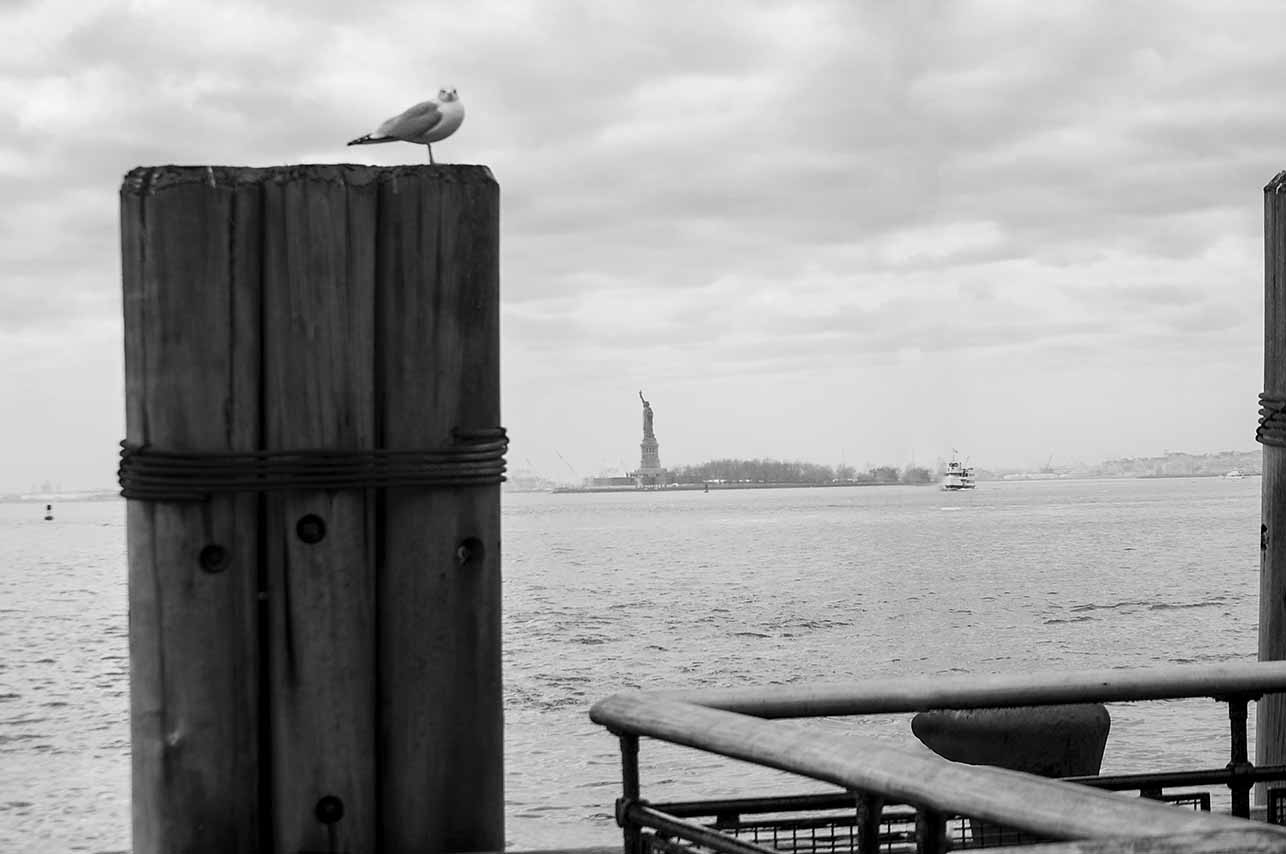 South Ferry too has changed, the terminal to Staten Island itself and the surrounding piers and dockage as well. But the Statue of Liberty is still the reliable anchor of America moored in New York harbor. Her raised torch, not a timid half-raised offer but an outstretched welcoming beacon, an invitation to the huddled others of the world to come join our bounty, our freedom. Looking out at that gesturing arm I saw the rejection of safe isolation, and a declaration of openness. It speaks of our trust and willingness to accept the globe’s poor, tired, masses.