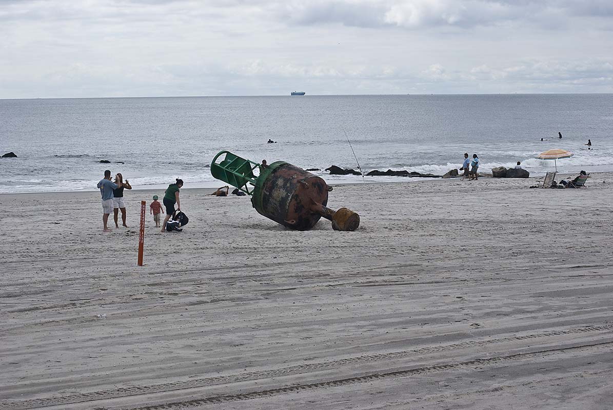 A Nor’Easter tore ashore in 2009 breaking an ocean buoy from its mooring and onto the sands of our shore. It was a wash-up that stayed in place as a local curiosity until it could be safely removed that Sept. Most residents and visitors had no idea of the size of ocean buoys until they saw one on dry land and very up-close.
