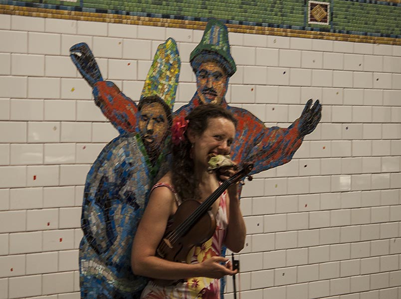 Entertaining passengers was once a violation of the NYC Railroad Rules, not so today.
