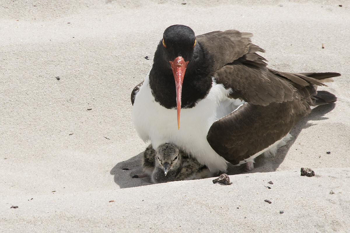 FYI: oystercatchers are usually monogamous and often return to and defend the same nesting area. They also practice “egg dumping”, laying their eggs in the nests of other species, like gulls, to be raised by them. Adoption by ignorance.