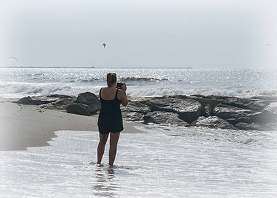 Soon after I came upon a lady taking photos of the jetty surf with her iPhone.
