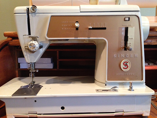 A local motor repair shop was unsuccessful in rehabilitating the machine. But when she spent $160 at a much more professional shop she found herself delighted. The owner of the pro shop said of the forty-year-old machine, “Today’s machines are made with plastic over a toy motor. They are made to be disposable, to last two years. This old heavy machine, if maintained, will last another forty years.” The machine sews everything from cloth to leather flawlessly. This Singer went from potential landfill to creative hand-fill.