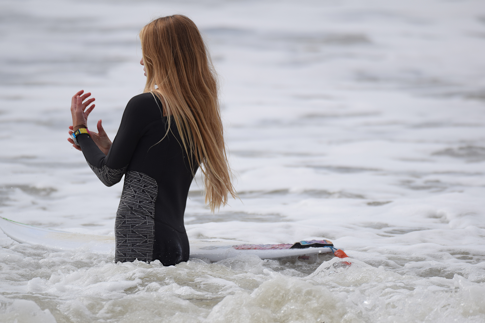 Now, in Long Beach, playful, exuberant humanity saw fun in swelling, crashing surf. Christmas-morning smiles were everywhere, on the sands, on the salty slopes… and on the faces of photographers.