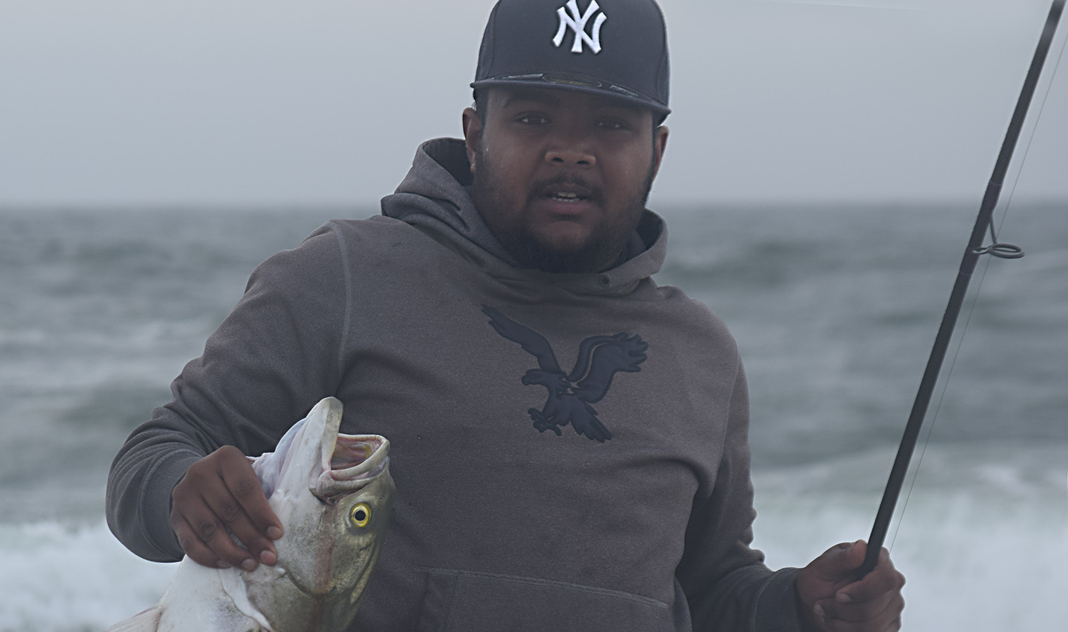 *He has worked for eight years as First Mate on a fishing boat and will start college in January. He says he fishes the shores of Long Island all the way to Montauk. He loves to catch and release big fish like stripers and blues. He says there aren’t a lot of twenty-year-olds as himself into it. He said, *”My dad is the reason I’m the fisherman I am today.” I think his dad was a very wise and loving man.