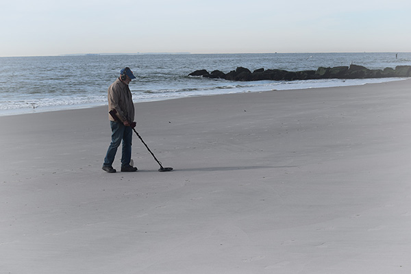 I came upon Jimmy, a retired NYC manager, who loves retirement and detecting metals. All he manages now is his metal detector. He was trekking alone, sweeping the sand back and forth, in presence, when I interfered with his moment. As we spoke I detected an unusual calm presence in this detector. It was in the way he spoke and smiled. He’s found serenity at the shore. Here was a happy man.