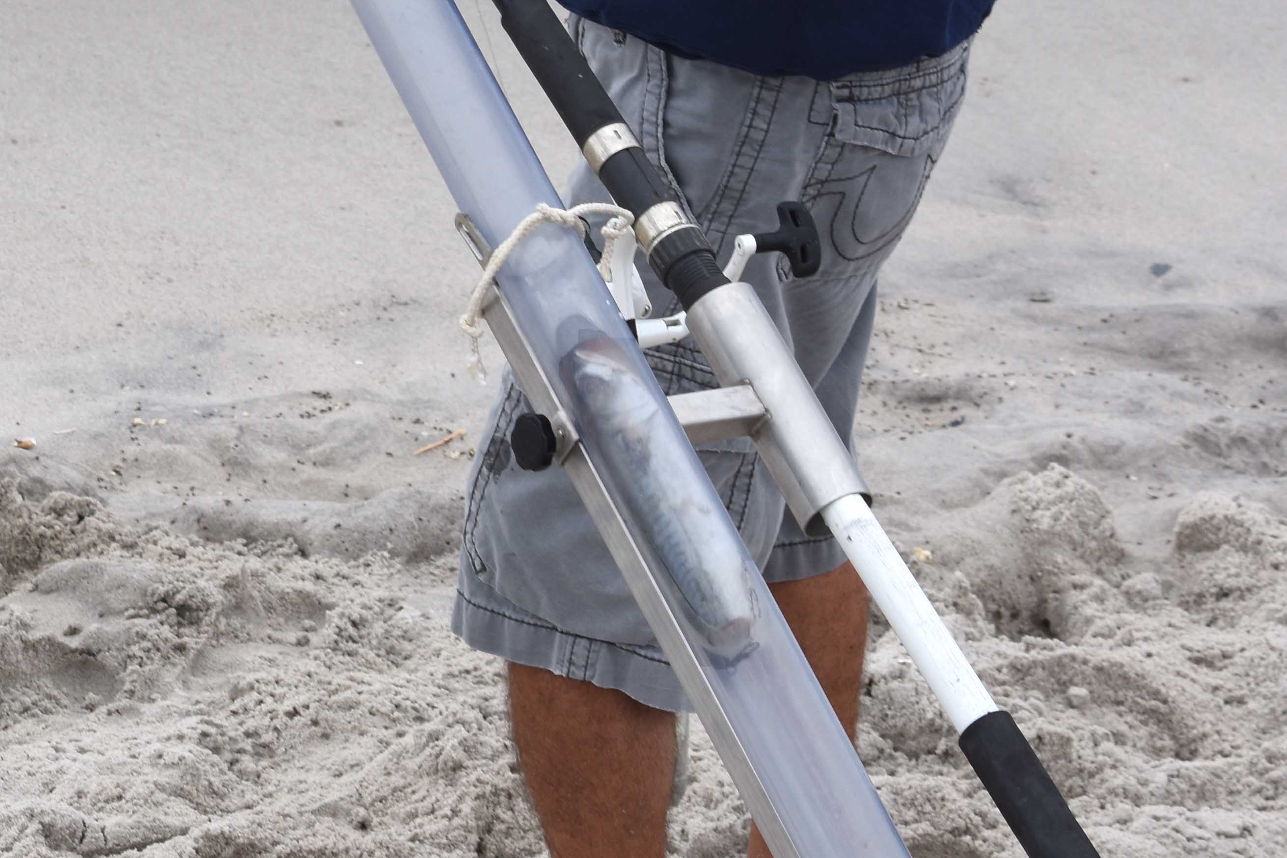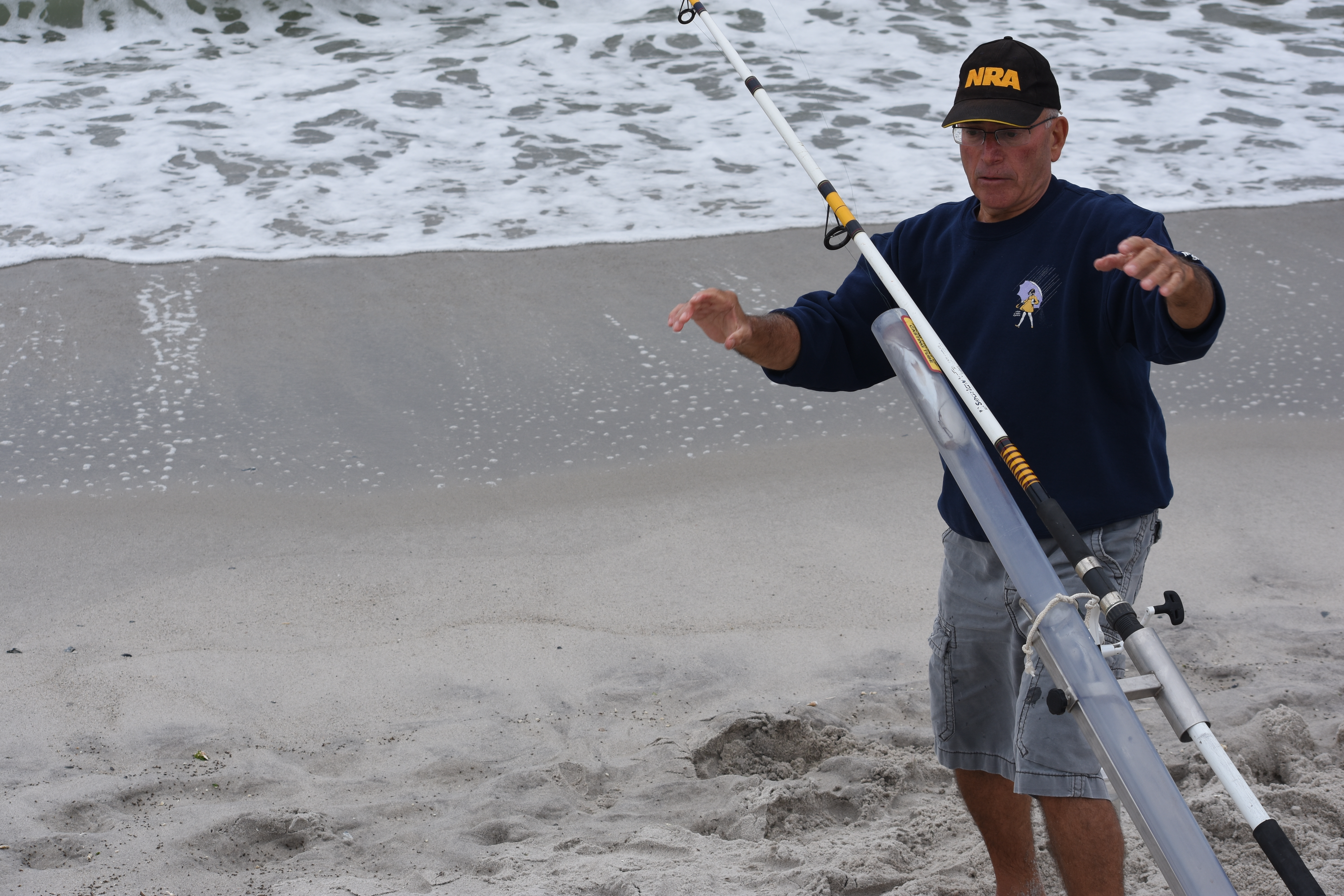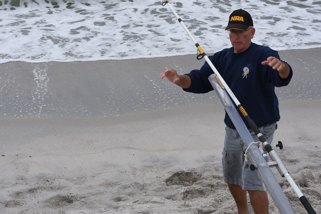 The fisherman, Joe B, had his cannon set up to blast bait out into the surf.