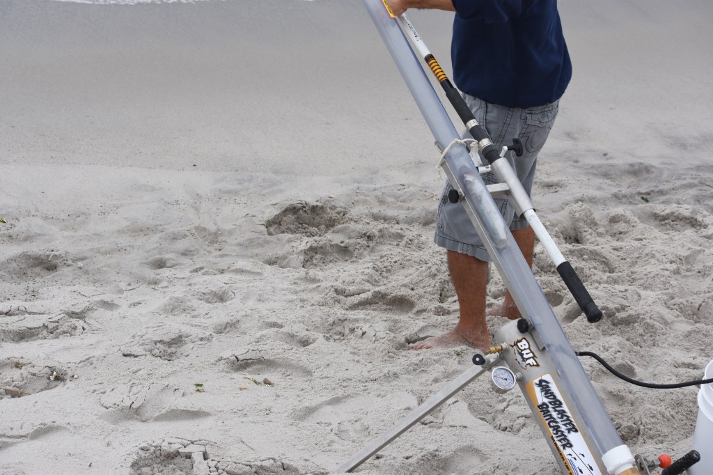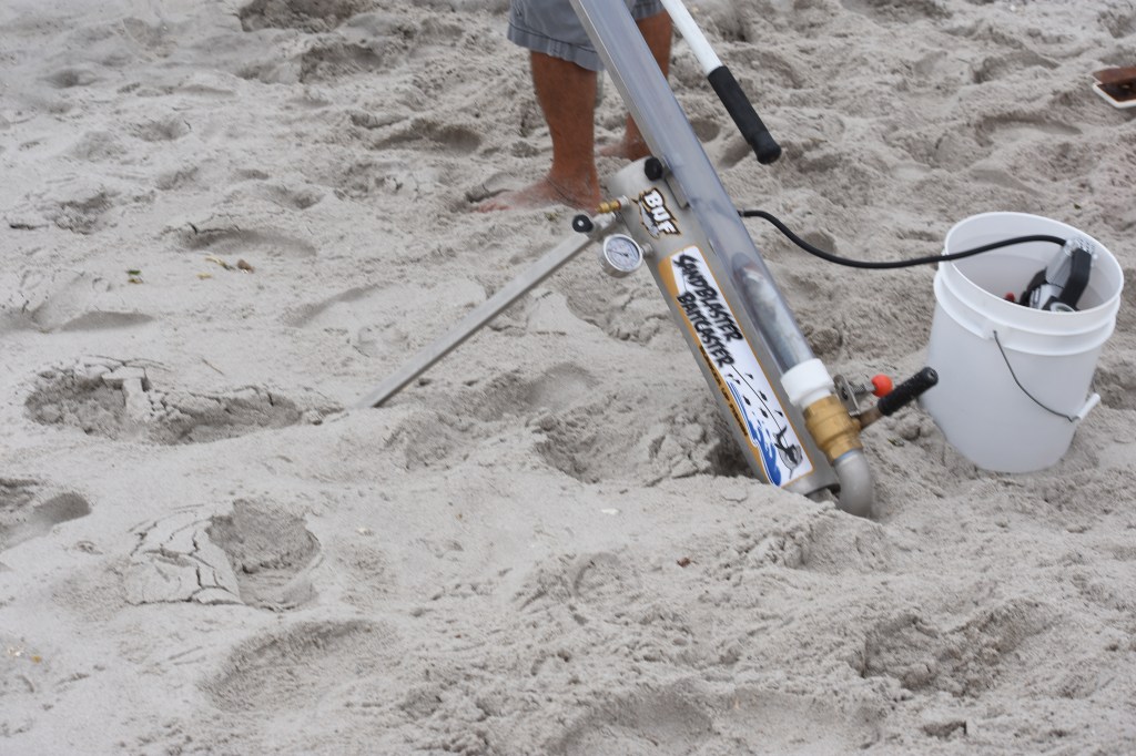 Joe’s cannon fired once while I was there and it did get out about fifty yards to clear the breakers. But certainly not the 350 yards he said was advertised.* Maybe, with more experience, Joe can improve his range. Even 50 yards is a rare cast with old-school hand casting,