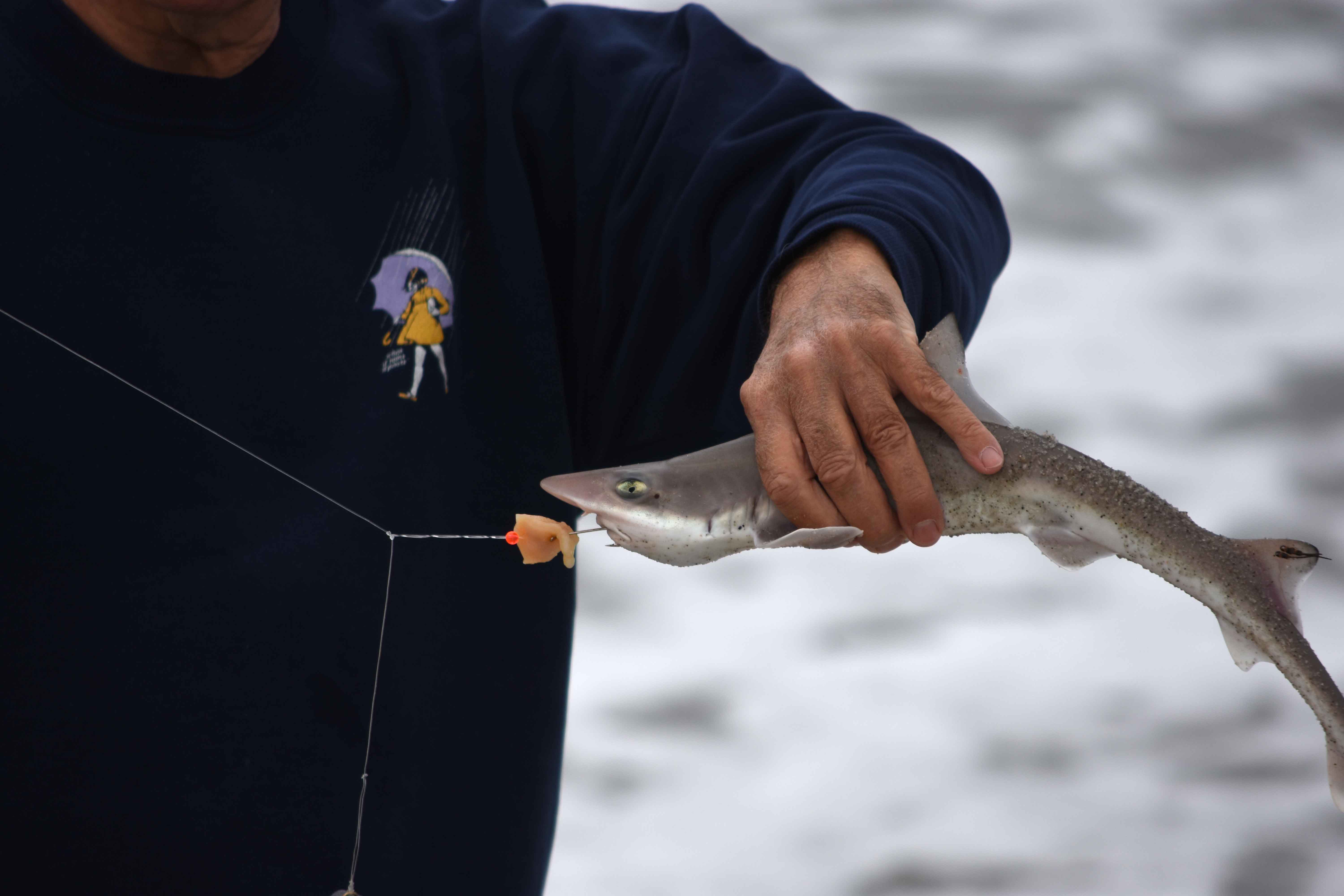 In the short time I was with Joe he didn’t get a bite on his cryo-bait , but he did get a small sand shark on his old-school hand-cast line.