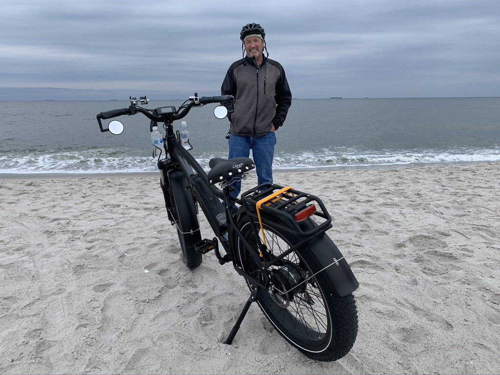 Keith said it cost, $1,499, $1,600 delivered to his door. It’s made in China but delivered from Tacoma, Washington. He said it rides very well on the street, “great shocks,” He rode it to the Massapequa preserve 17 miles, one way. He’s very happy with his passion.