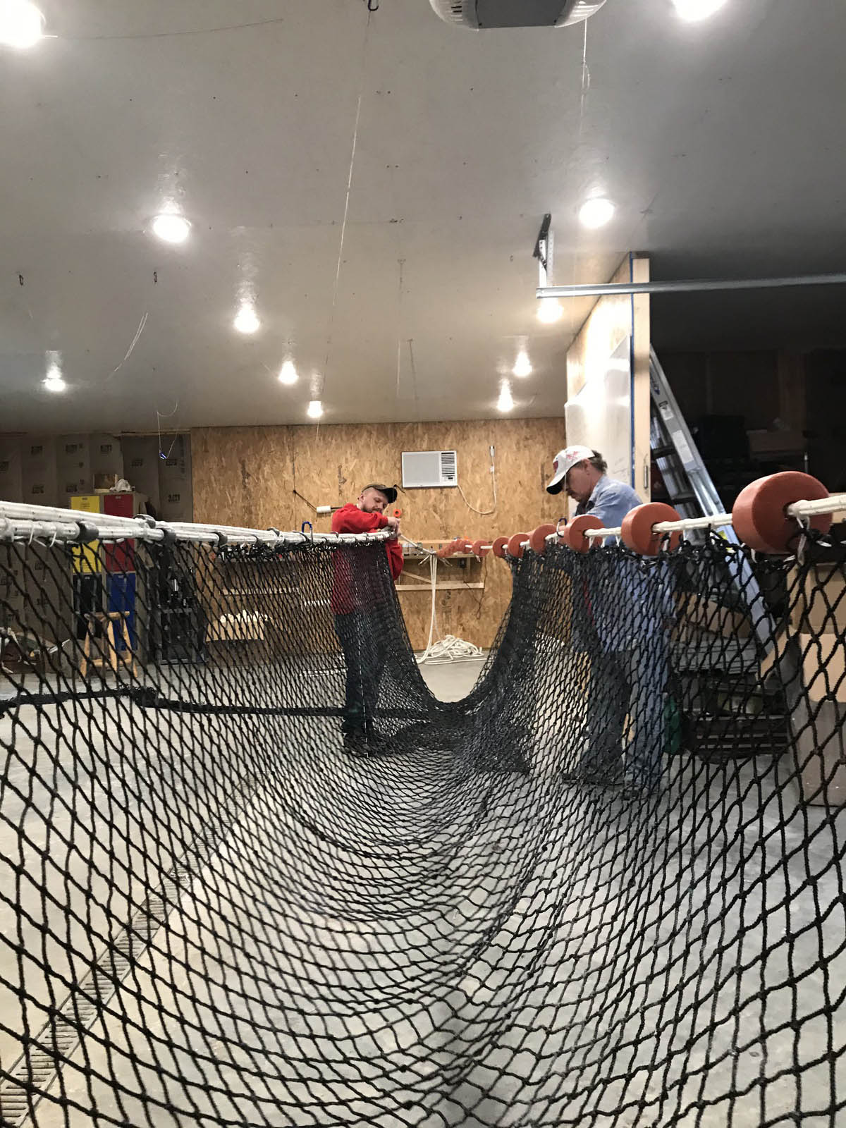 Greg said, ” “When you’re dealing with netting, your mind has to stay with tying those knots. And when you finished you see this big old net that you just built…You and your buddies just built this thousand-foot net, three, four football fields long. You made it; nobody’s shooting at ya. That’s a good thing.”