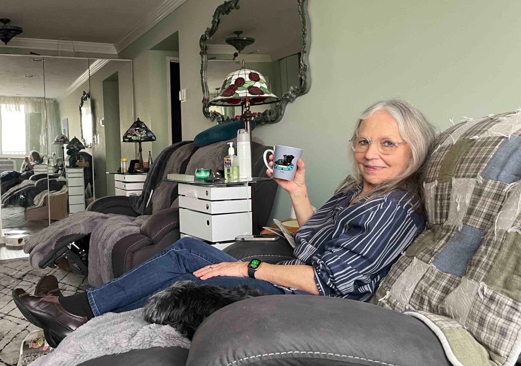 I sat in my recliner near the window, Cheryl in hers nearby; Scout scrunched up against her leg.
