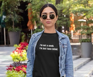 Thank you for mentioning the t-shirts and other items I make in my Etsy shop. I’ll add an additional link here to the entire face blindness section of my shop: