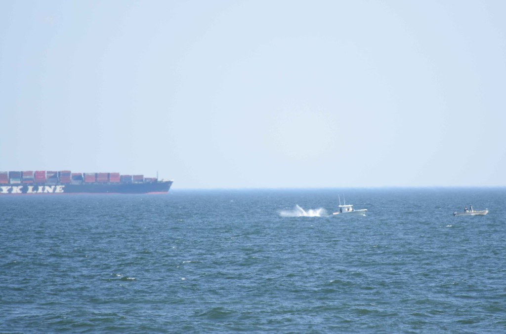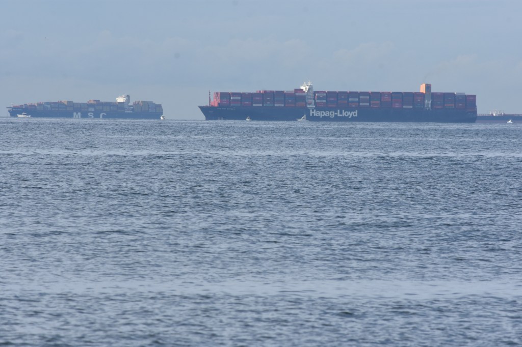 Ships are always offshore waiting to dock in NY, as seen in my photo of our old Long Beach boardwalk:
