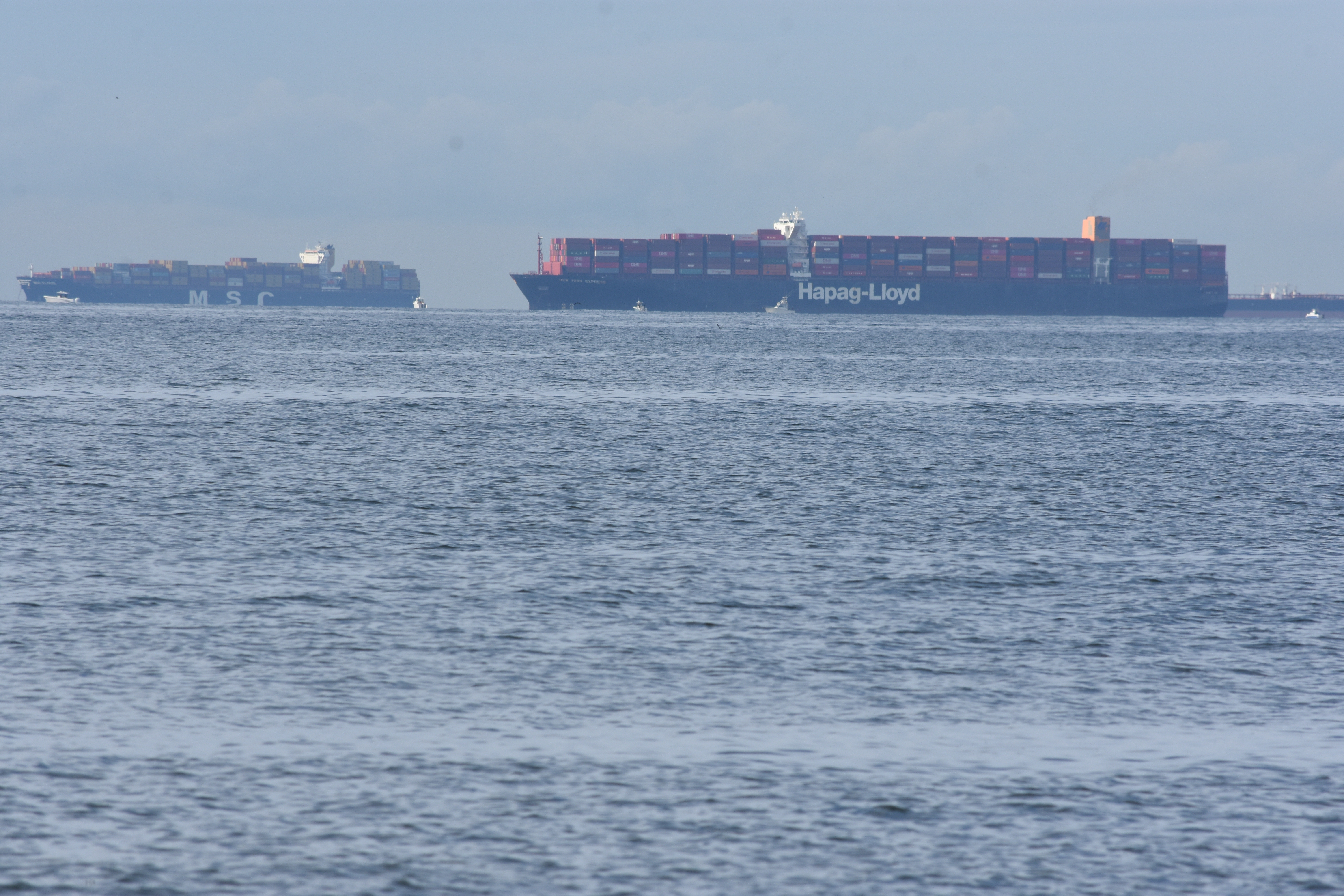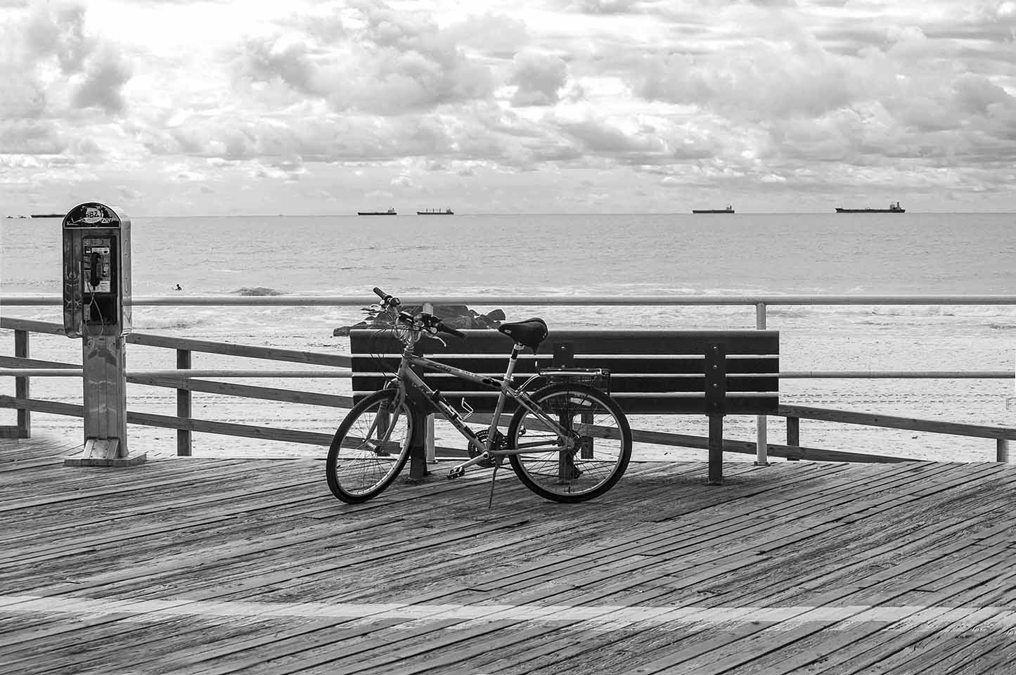 Ships are always offshore waiting to dock in NY, as seen in my photo of our old Long Beach boardwalk: