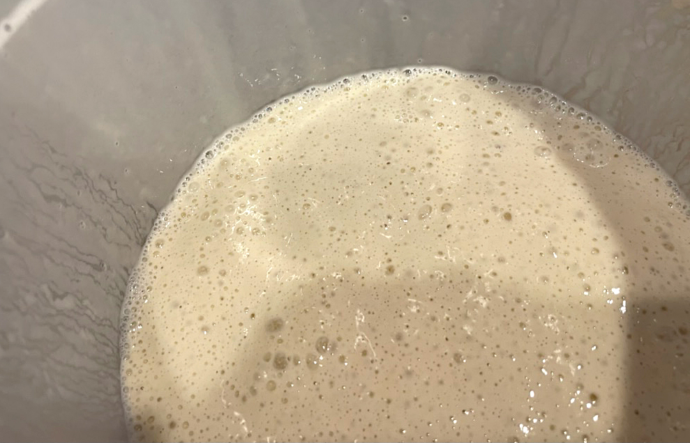 Scott showed me his starter which he said he “feeds every day. It’s very active and bubbling, I don’t use any yeast.”