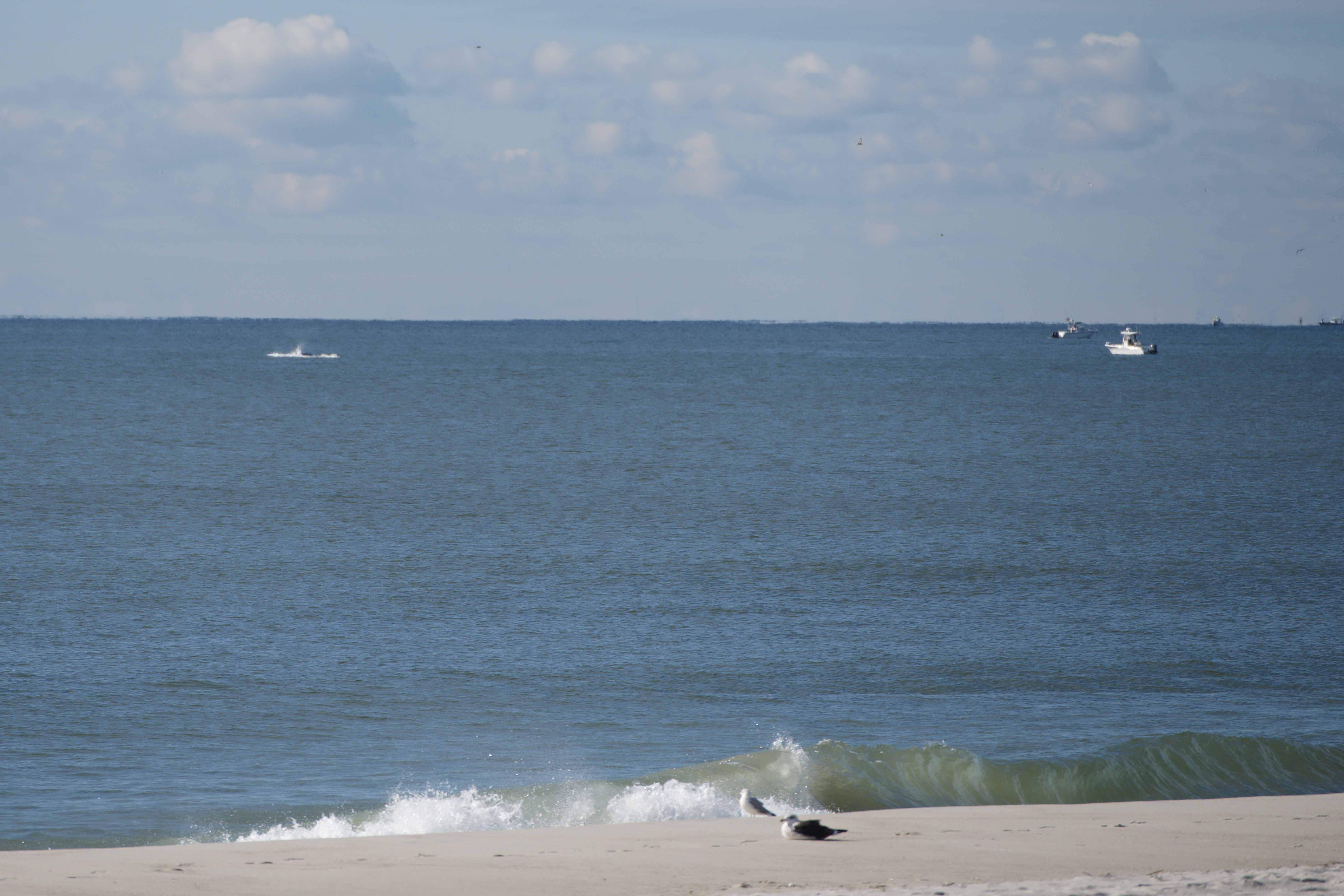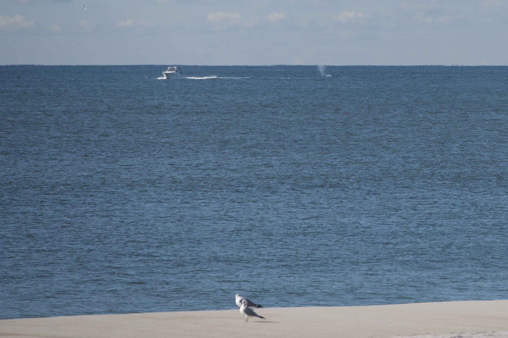 This past Tuesday, Oct 17, 2023 about 9:15 a.m. I pulled up at the boardwalk rail of New York Ave beach. I came upon a man on one side of the beach pass booth looking at his iPhone. I asked if he saw any whales. He said, no.