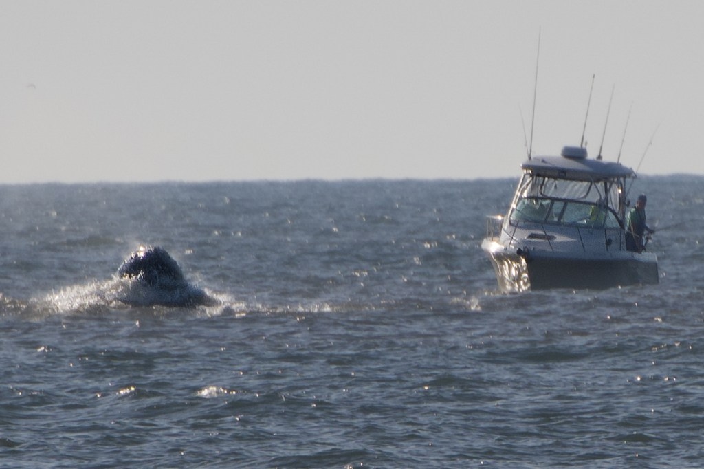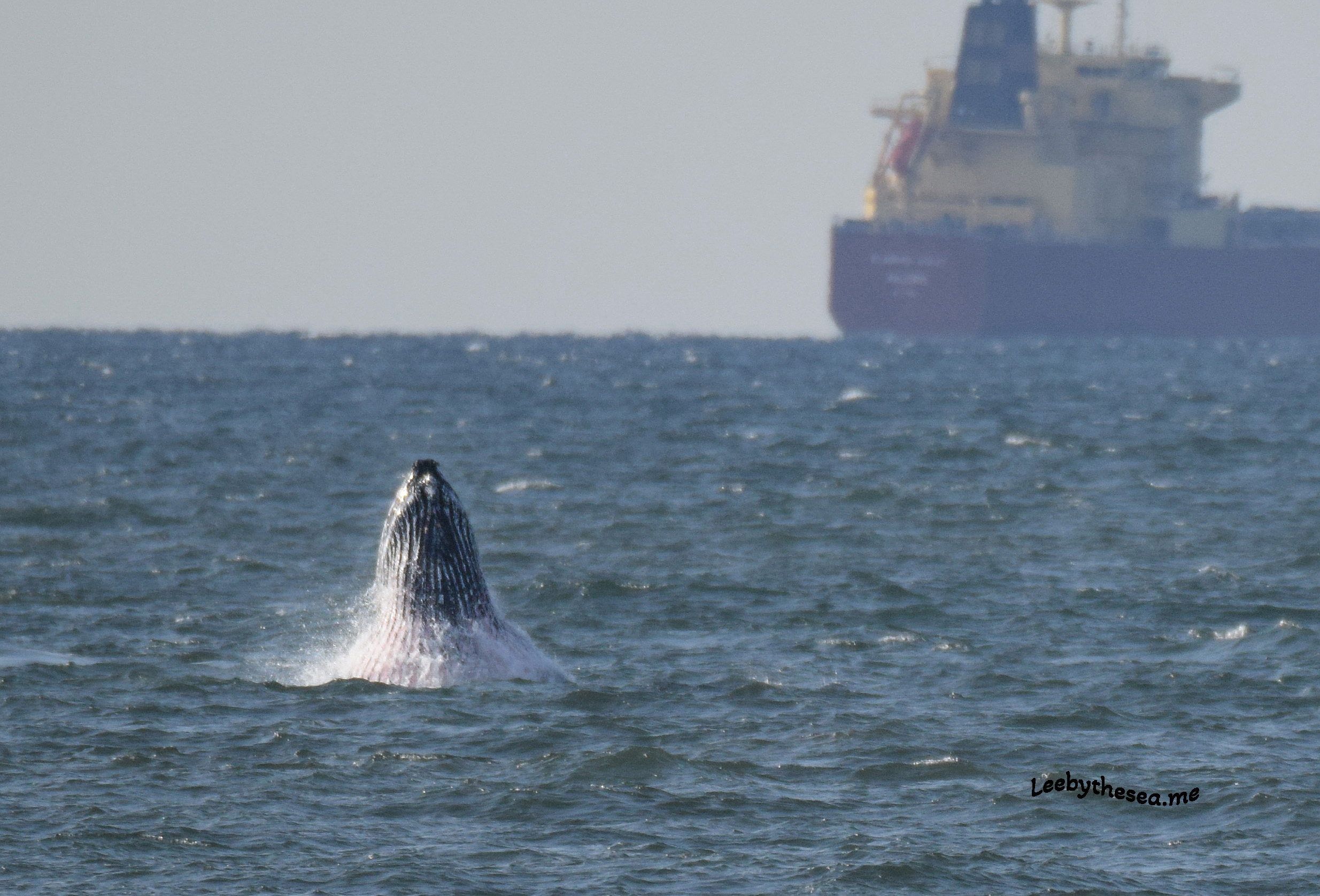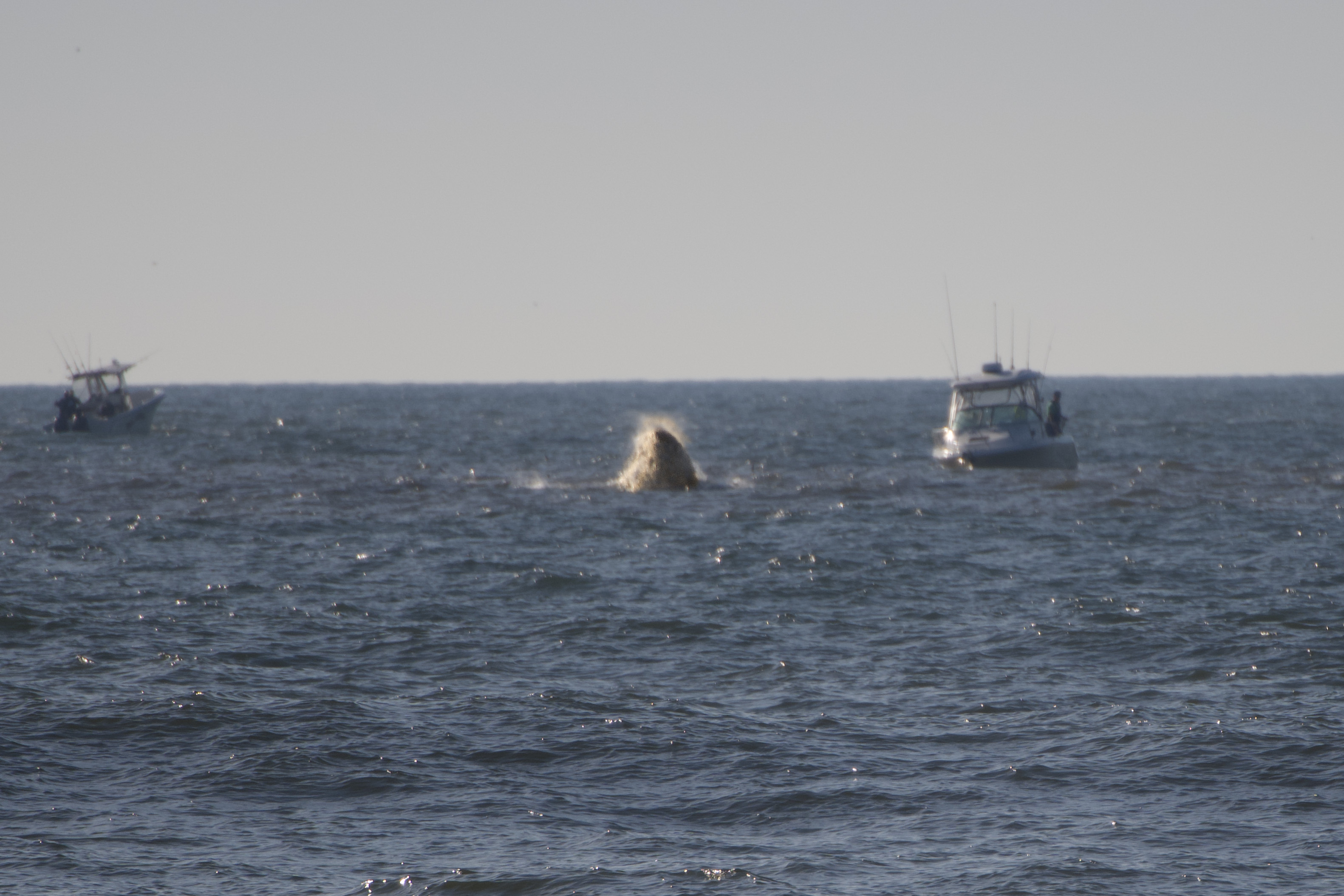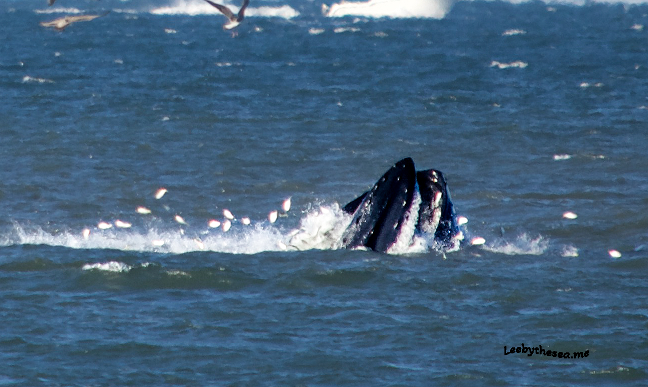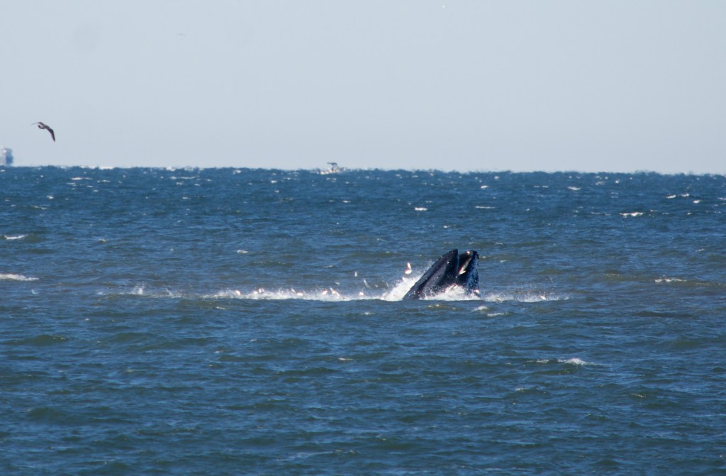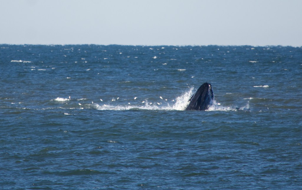 Through a whale-sight tip from Alex and Gregg at Lazar’s Glizzy, I caught this action at Lincoln beach: