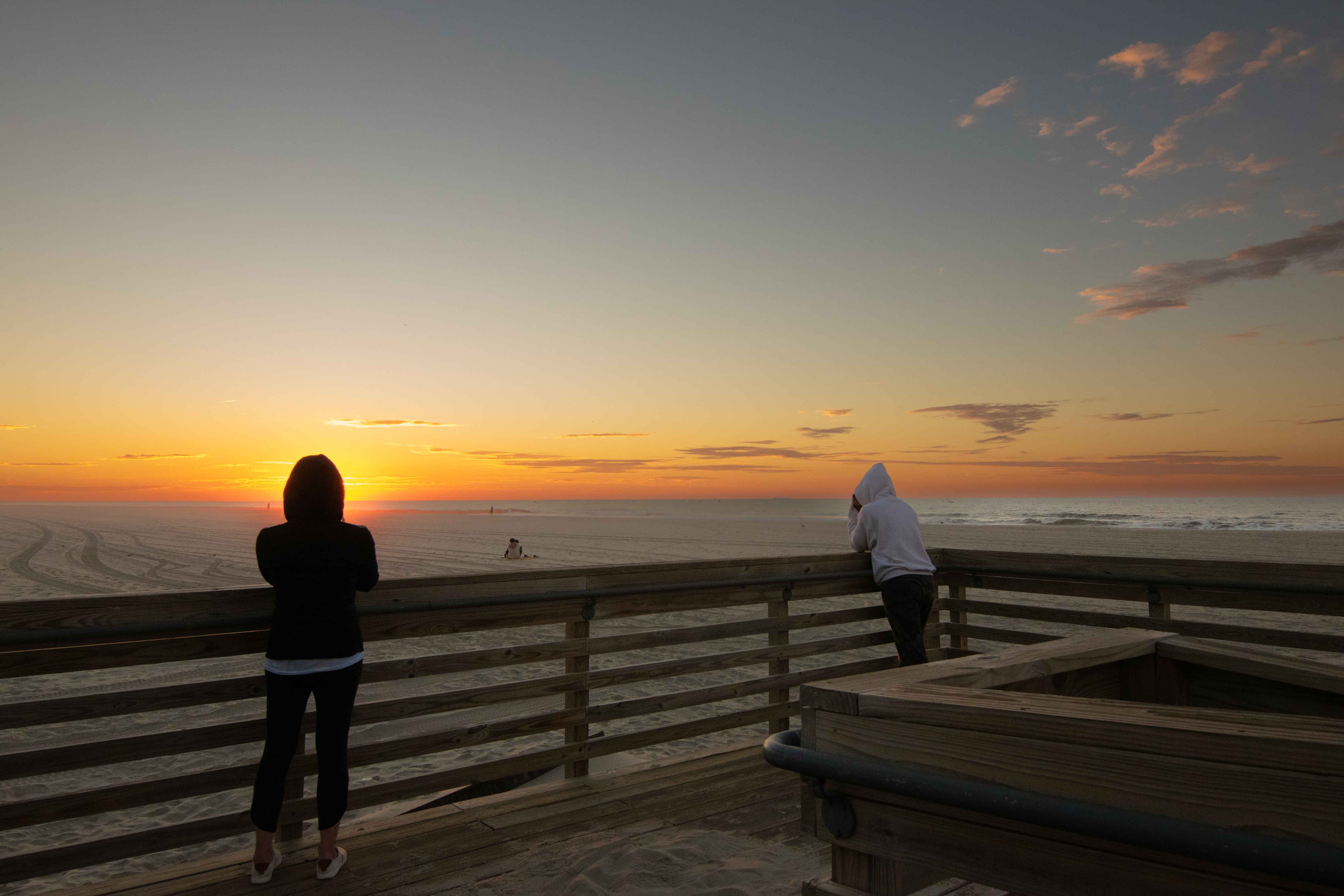 After biking to the westernmost of our beaches, New York Ave, I saw a young lady at the rail. She had just finished her boardwalk run. I said, “See any whales?” She said, “No, not yet.” I told her about my blog and gave her my card.