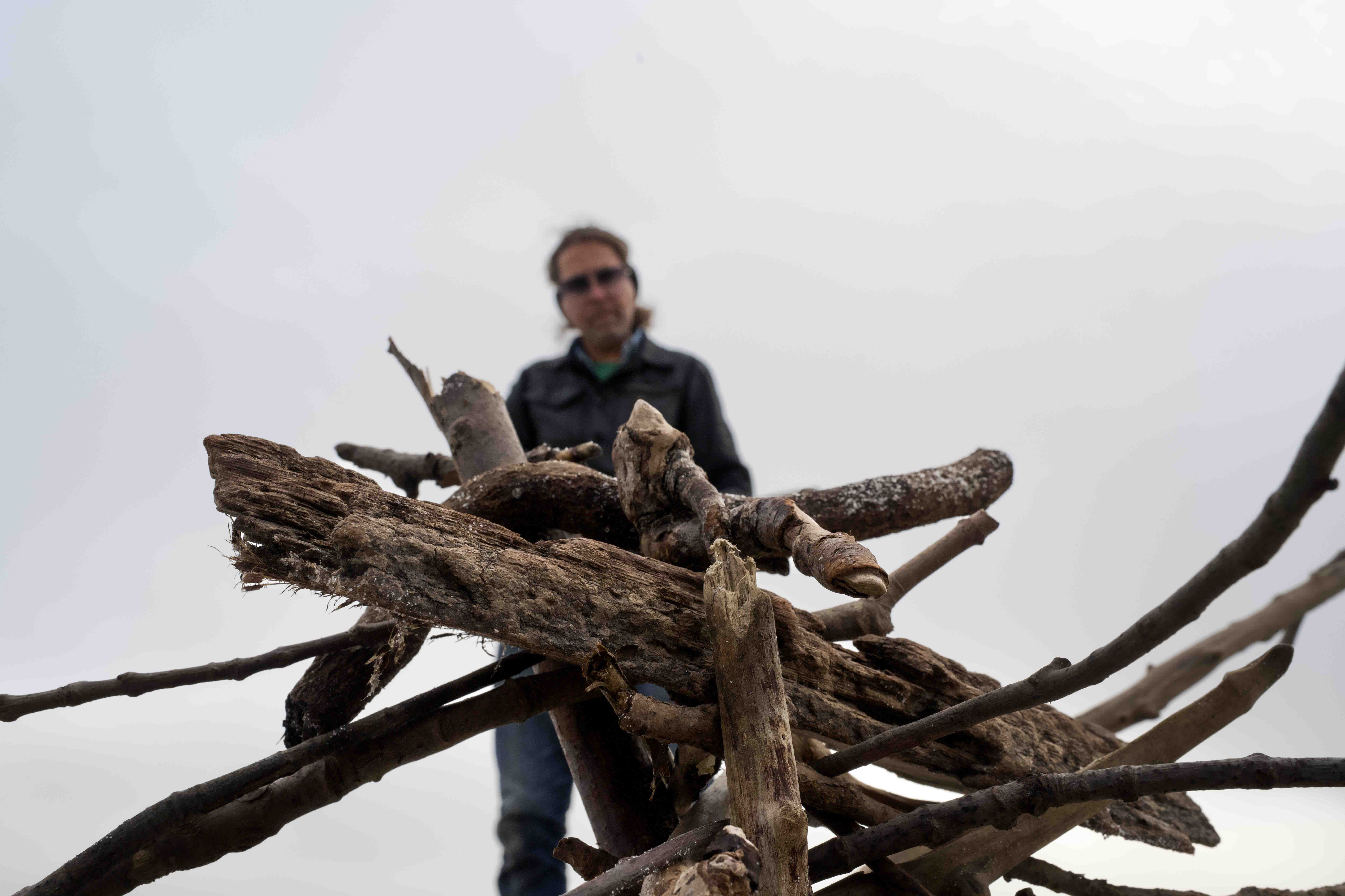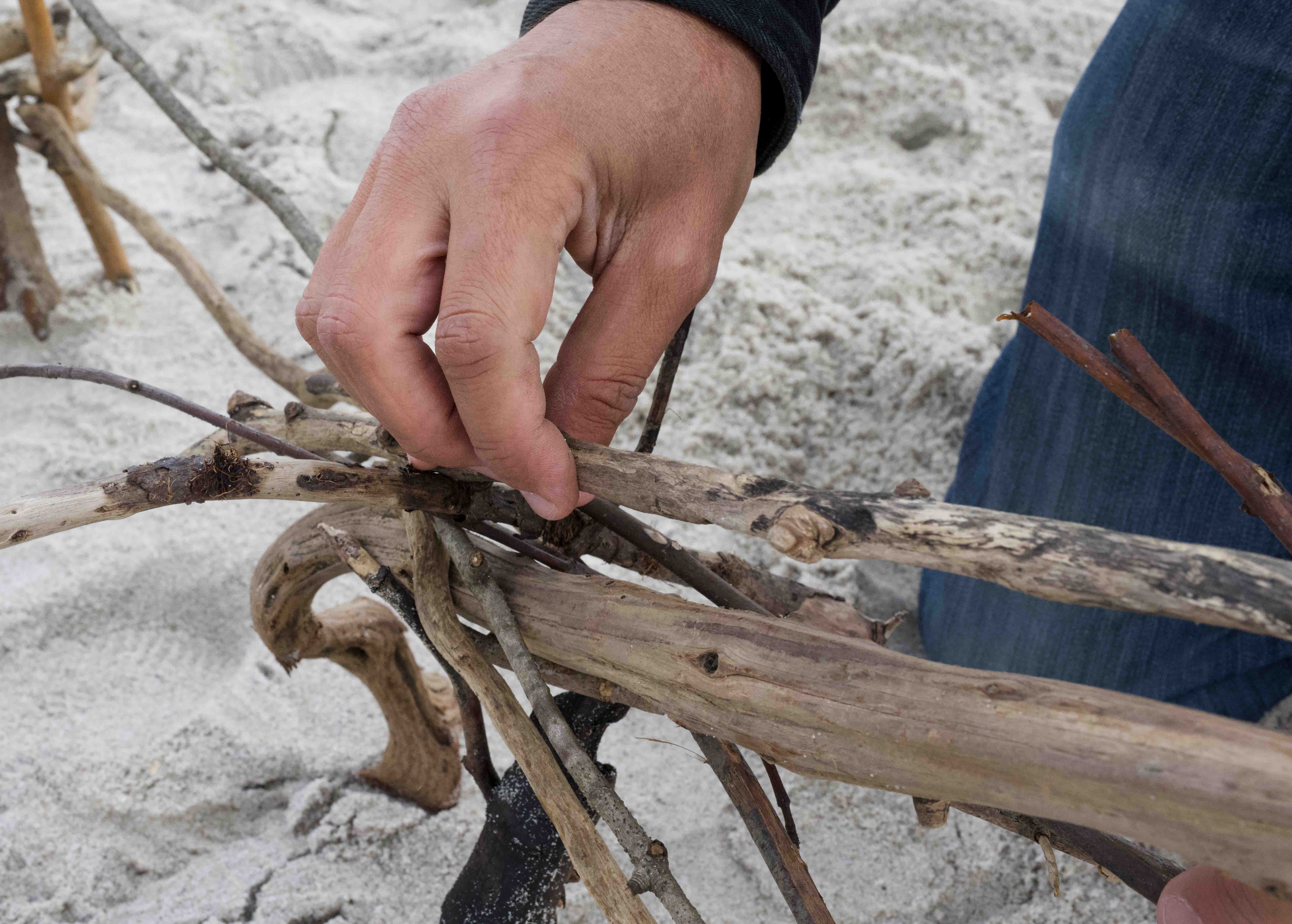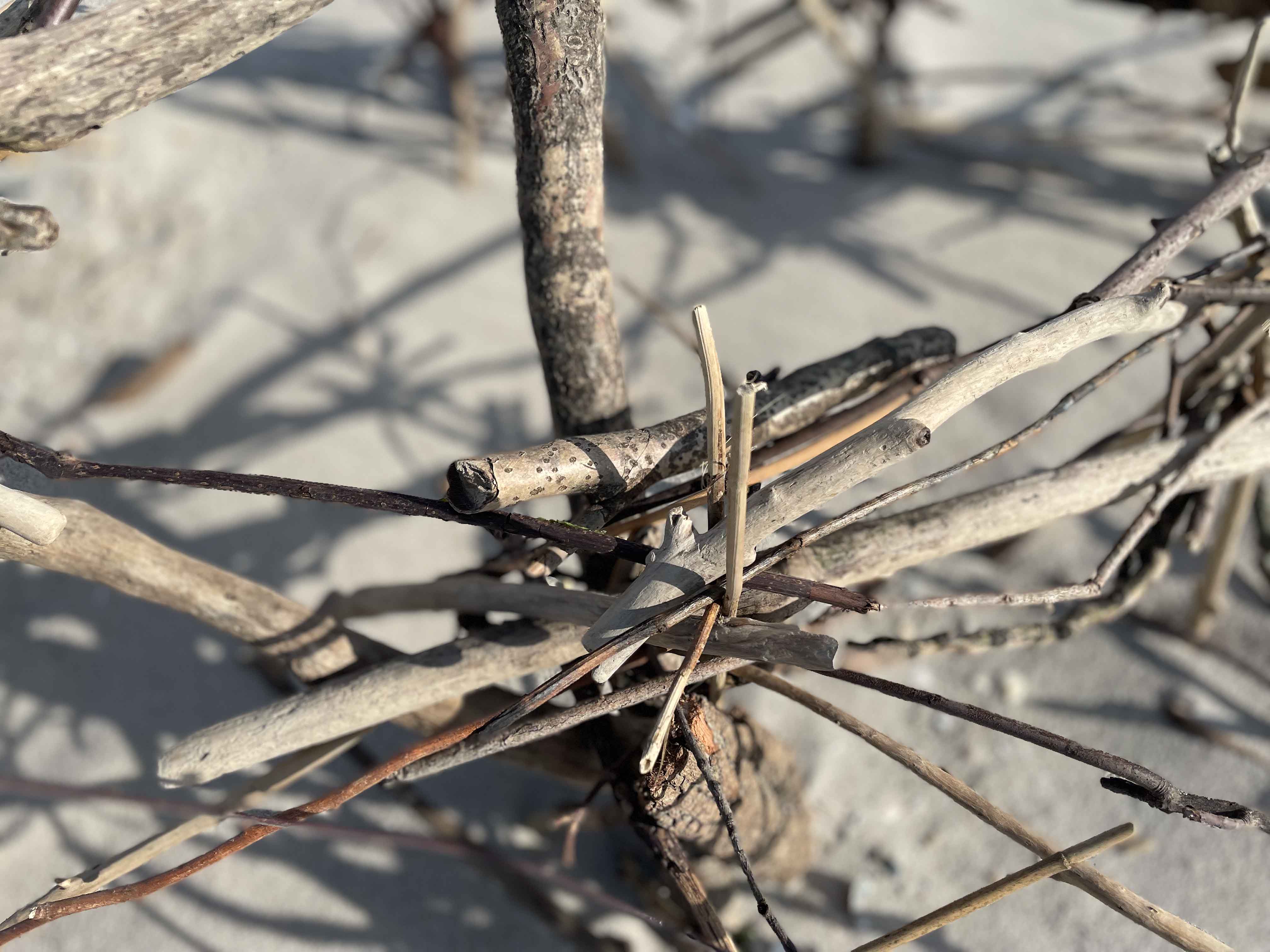 Cool, I thought at first, but I became amazed when I noticed the light driftwood stood without any bonding at the junctures: no wire, cord, or vines. The seventeen mph wind did not affect the sticks.
