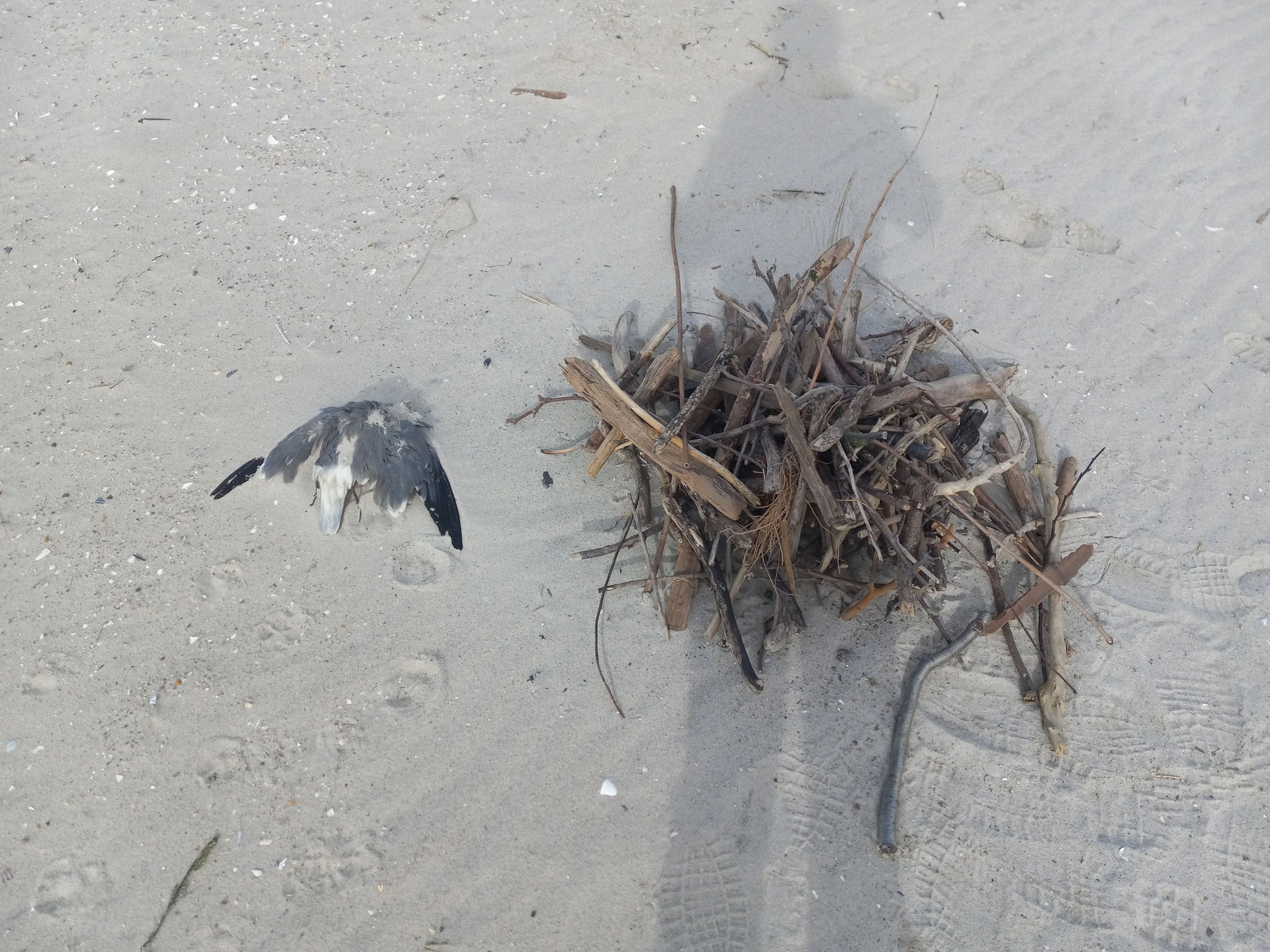 He told me he found dead herring gulls on our shore and made what he called “burial wreaths” for them. He said, “It’s sad to encounter a dead thing but it is part of the circle of life.” He told me the birds died, “…of plastic webbing, wrapped around them, perhaps assholes in their yachts are throwing things into the sea. And these creatures are dead because of those people.” When I said, Maybe the plastics came from the beach,” he said, “It might have but I have not seen too much garbage on the beach.”