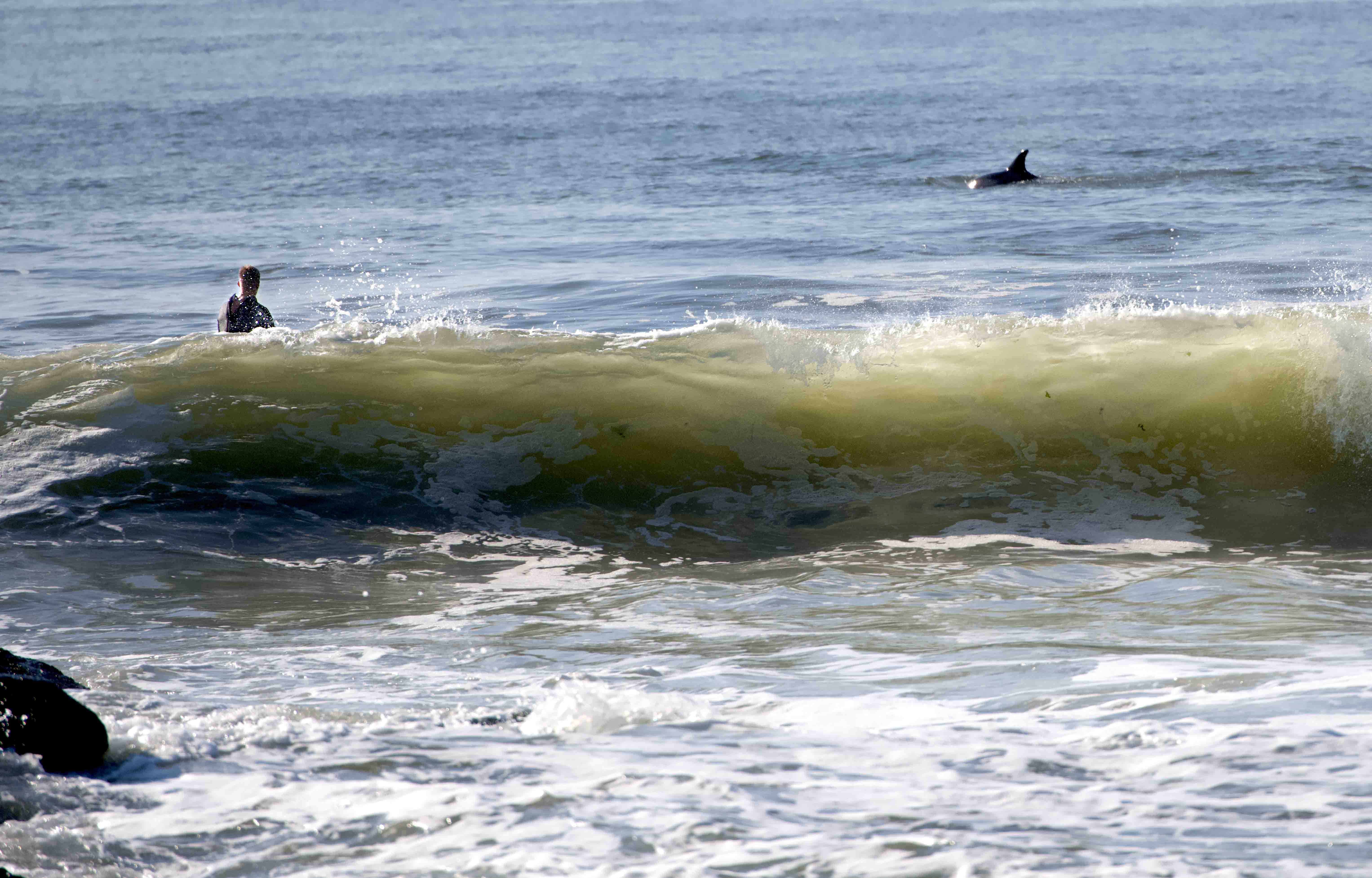 I recently saw bottlenosed dolphins close offshore, at our New York Ave beach.