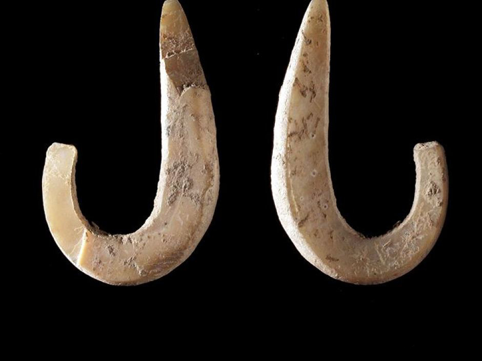 Prehistoric fishhooks (photo, abc.net)