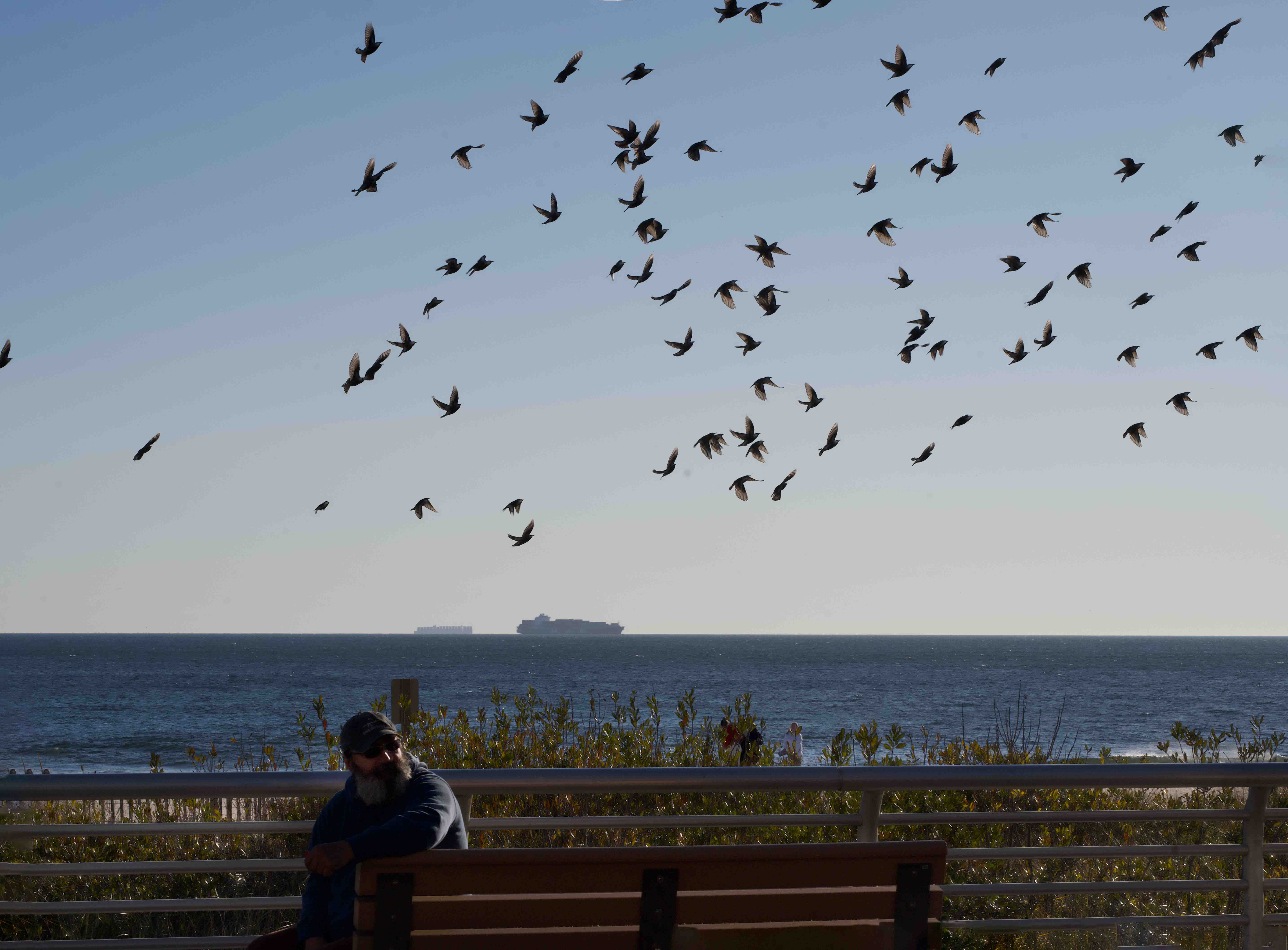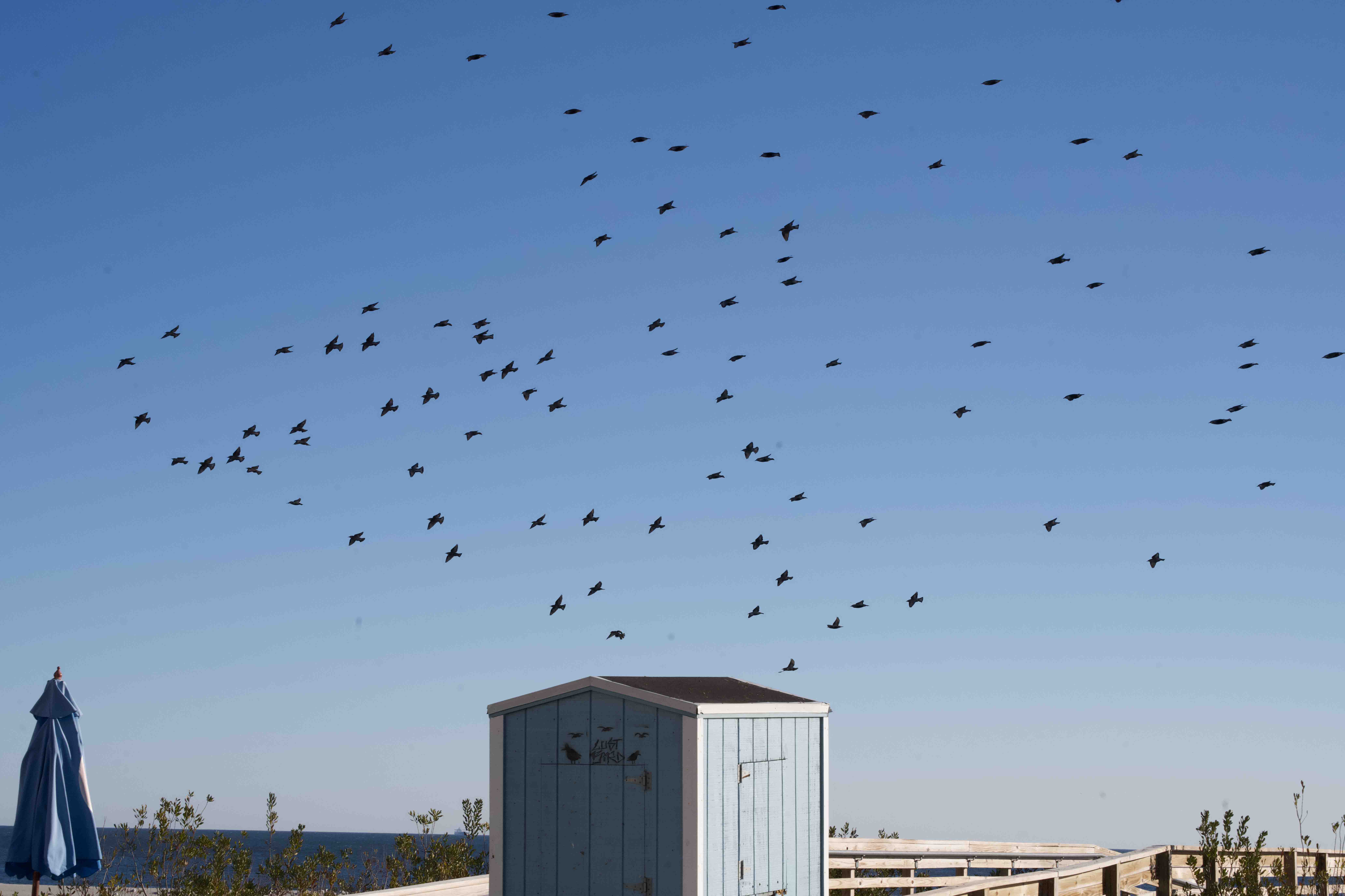 On the boards at Lincoln Beach by Lazar’s Glizzy, starlings added pepper to the salty air.
