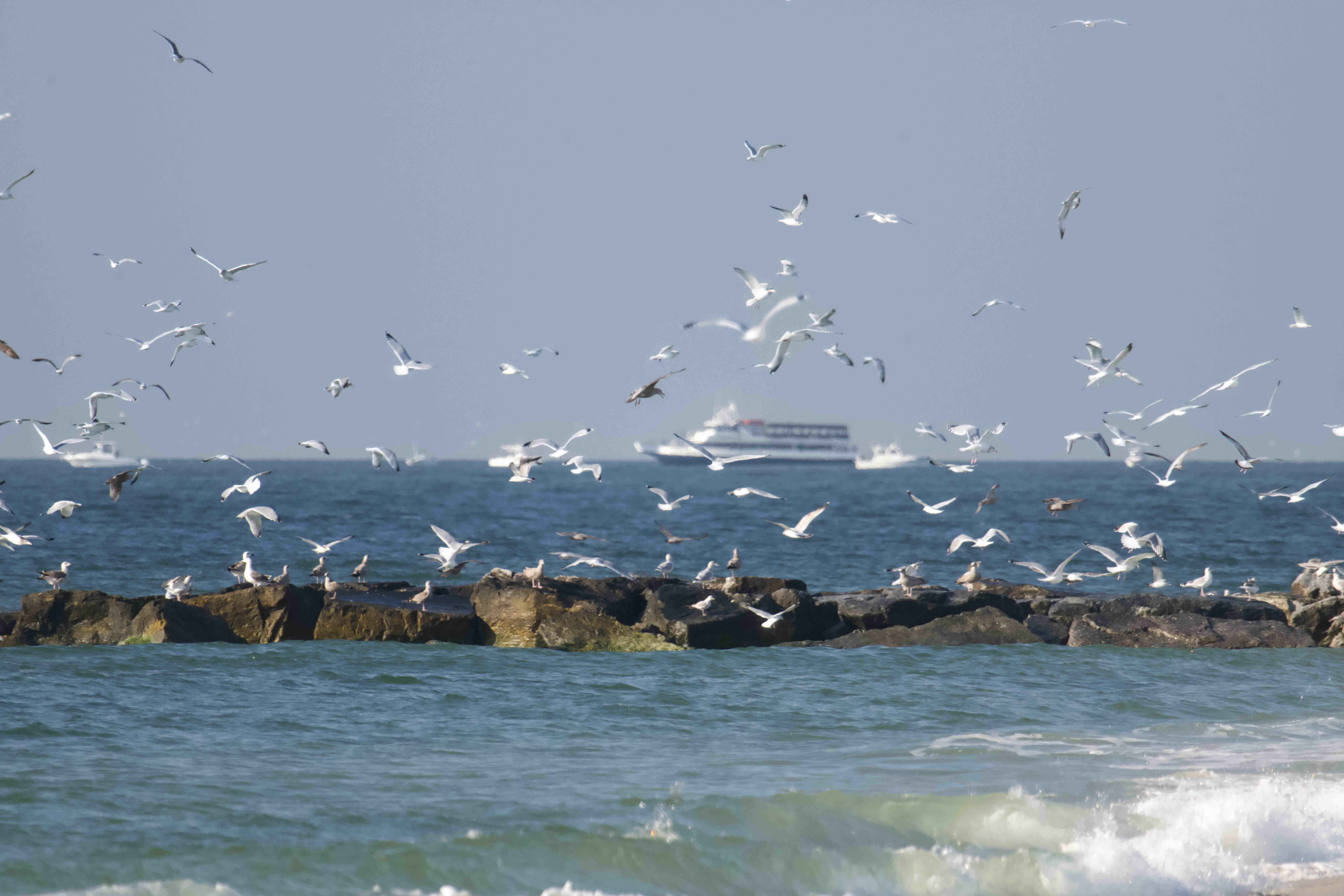 Baitfish fled predators below—like stripers—to the predators above—like gulls.