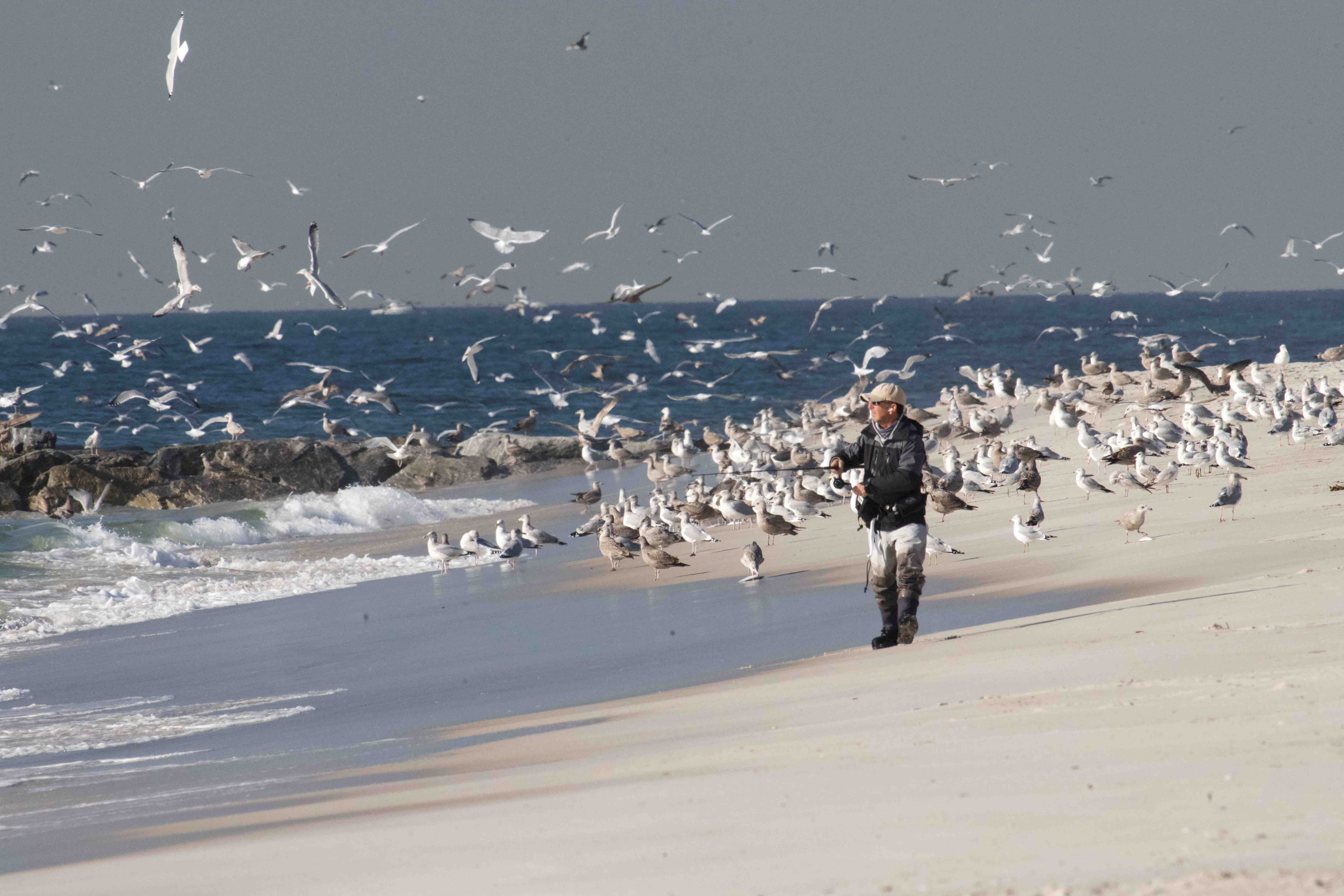 On the beach, farther east, clouds of gulls announced the baitfish run.