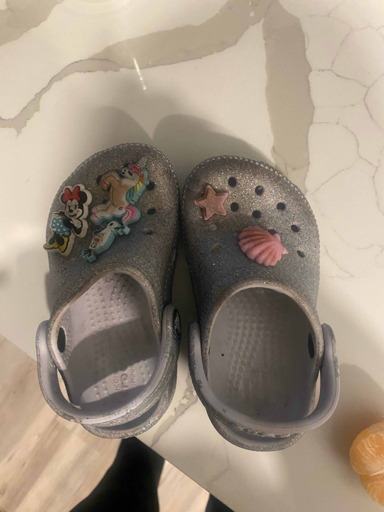 The found Crocs were still adorned.