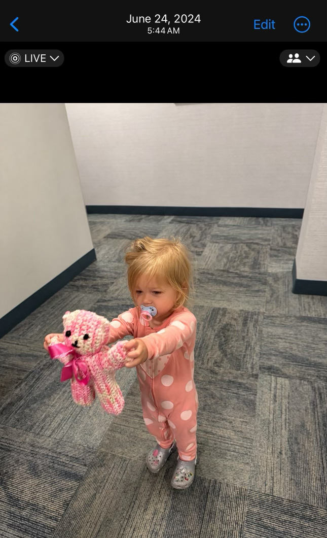 He said, “We bought Olivia new Crocs, and our neighbor, Joann, even got her another pair.”