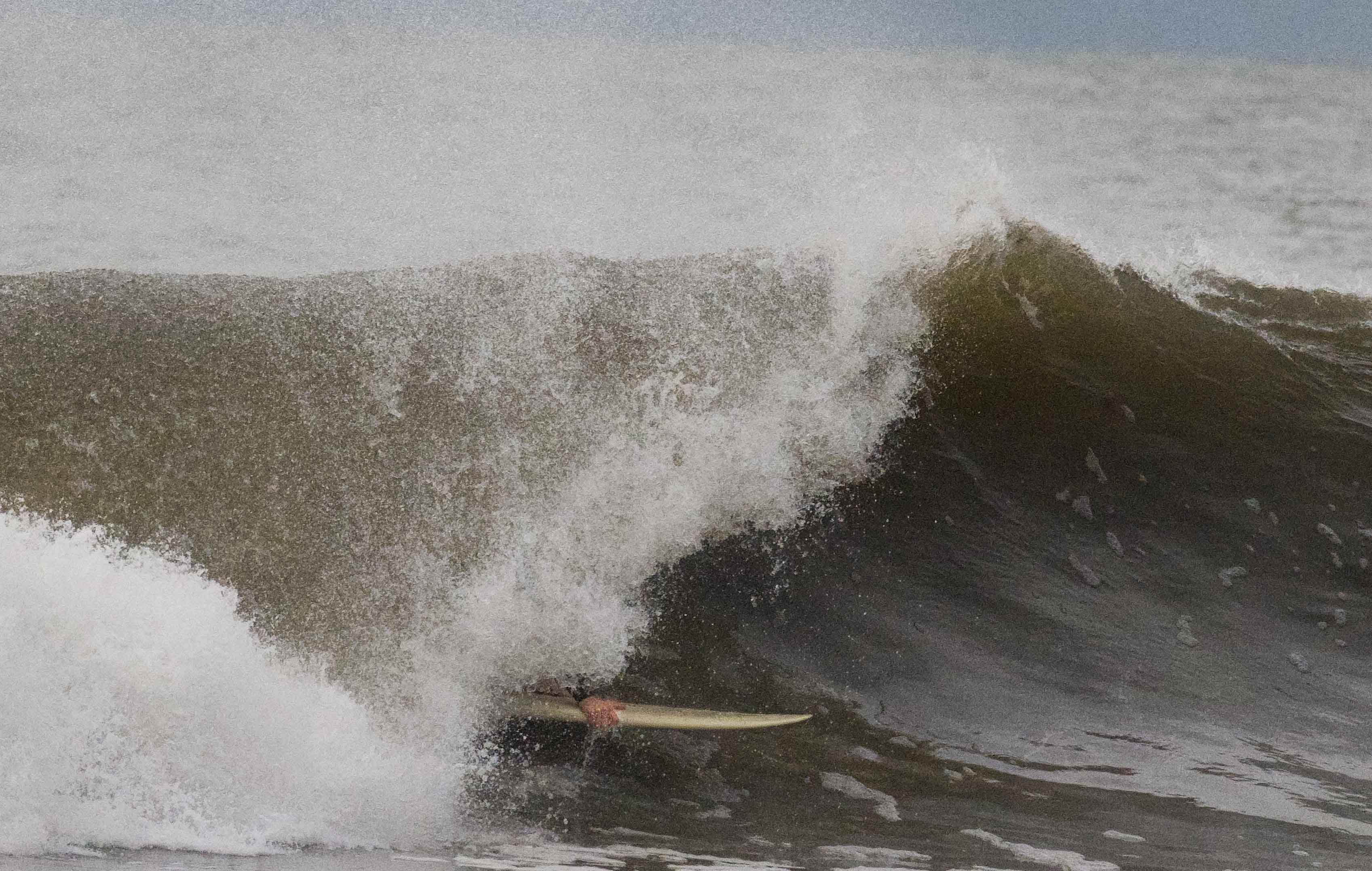 However, on the 14th of October, the surfers had their eyes on the prize. Twelve-foot waves, one after the other.
