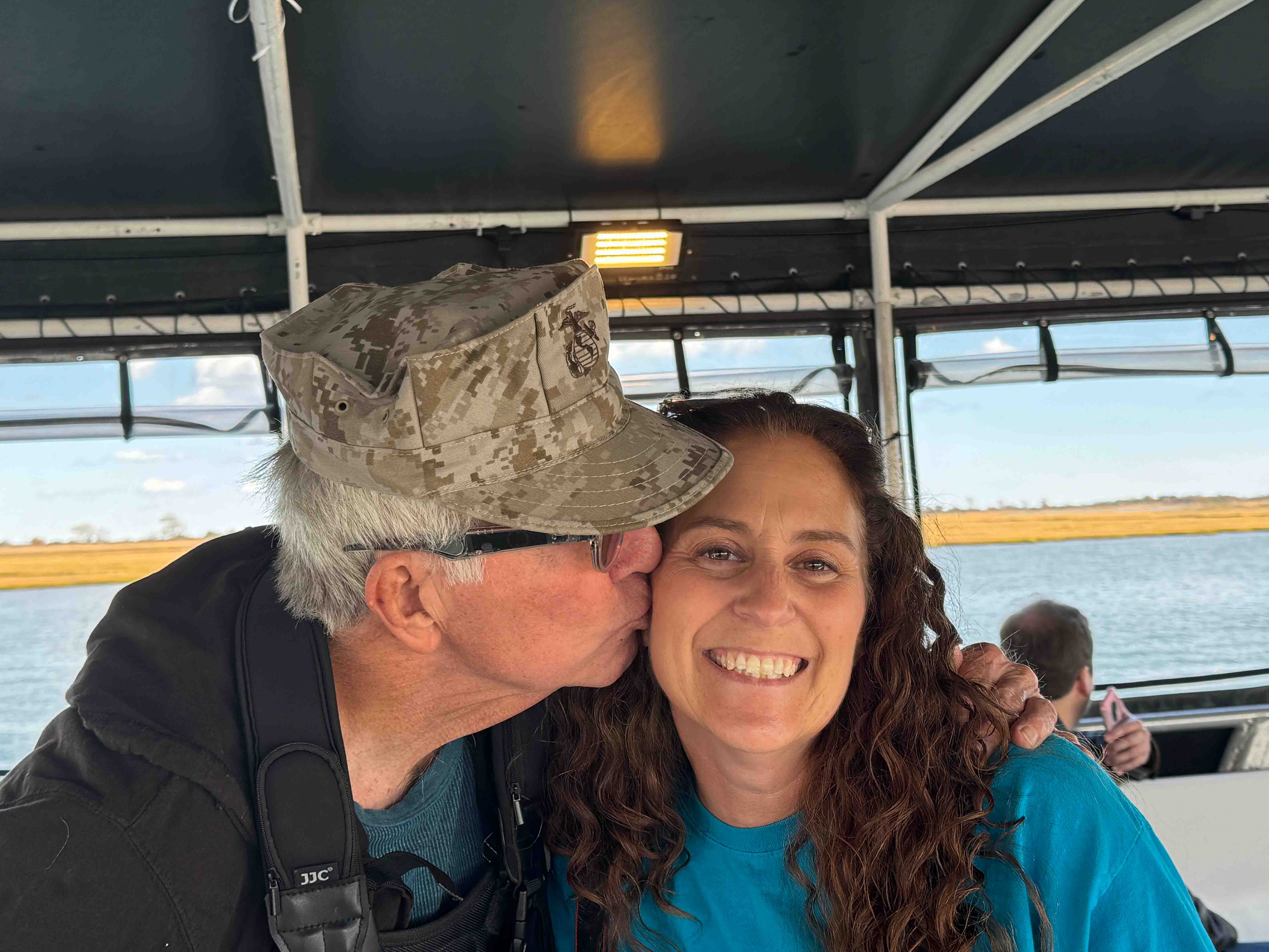 Kim spotted my Marine Corps hat, above said glasses, and Semper Fi’d me, telling me her husband was in the Corps too.